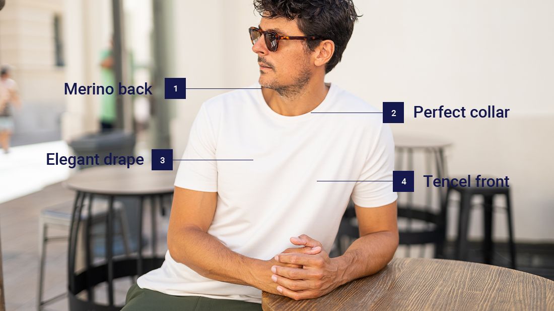 I wear Merino wool year-round, it's thermo-regulating, odor-resistant, and quick-drying. I shop at Seagale, their gear fits my body type. This t-shirt is the best I've ever owned.