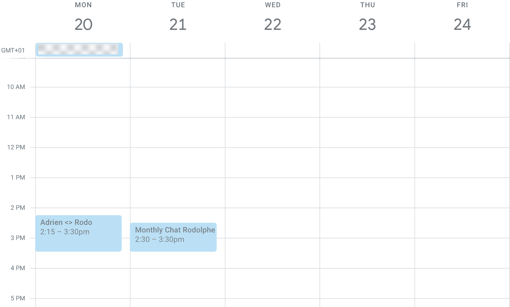 Here's my calendar for a typical week: